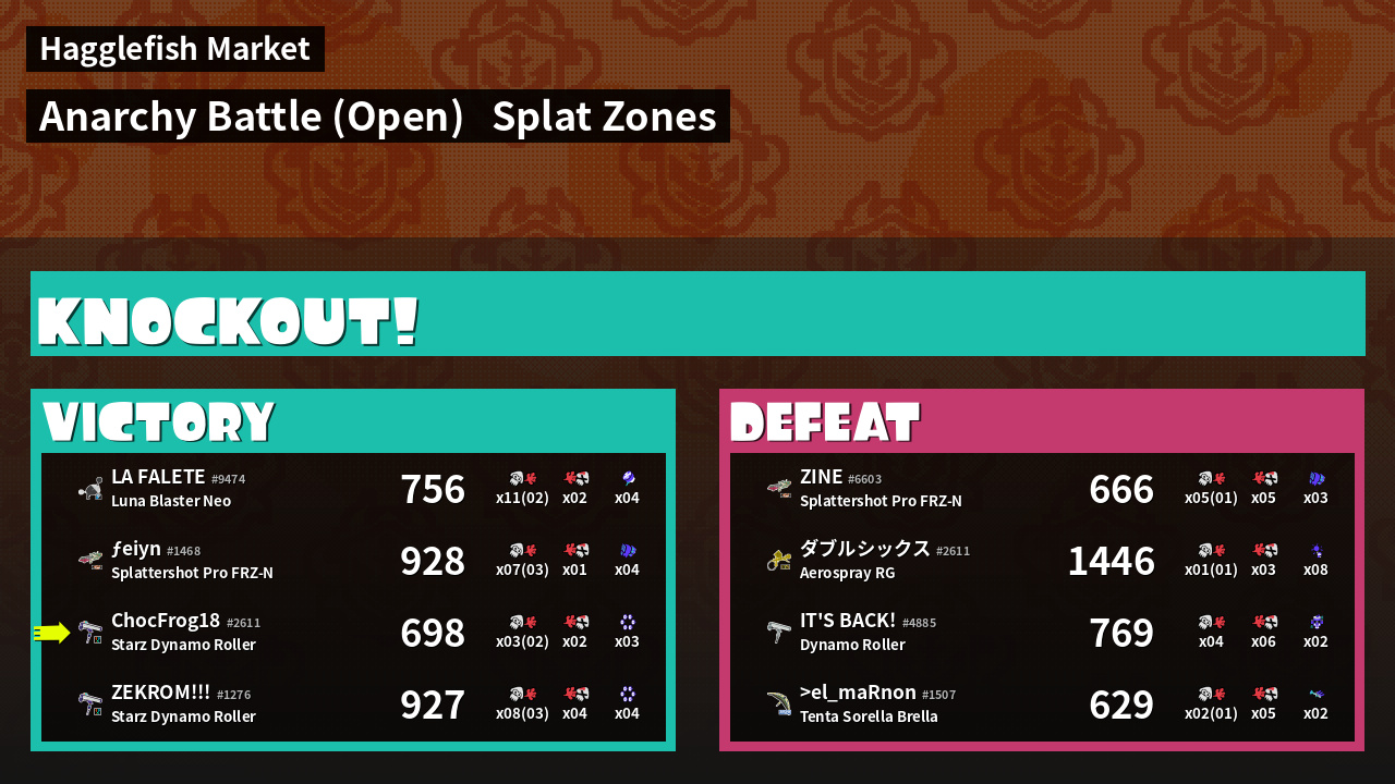 | Mode | Splat Zones - Anarchy Battle (Open) | ||