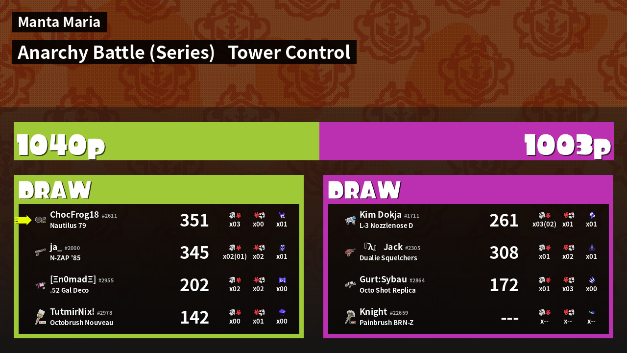| Mode | Tower Control - Anarchy Battle (Series) | ||