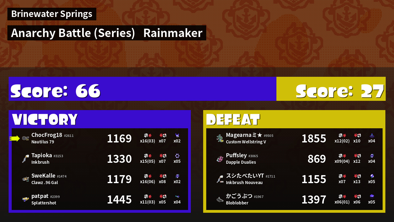 | Medals | #1 Overall Splatter #1 Popular Target #1 Enemy Splatter | ||