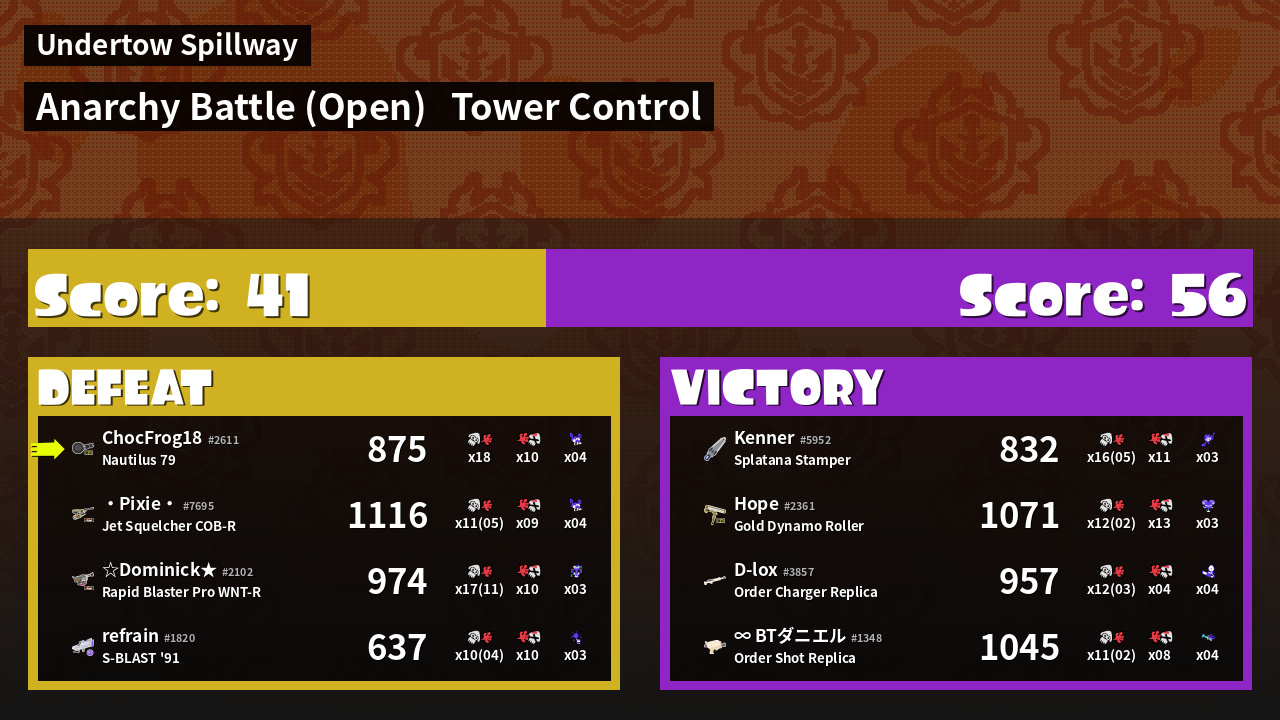 | Mode | Tower Control - Anarchy Battle (Open) | ||