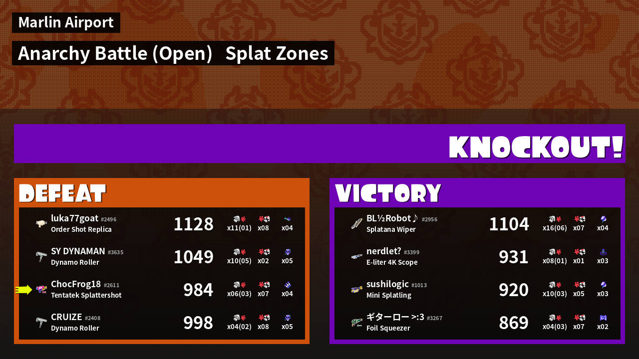 | Mode | Splat Zones - Anarchy Battle (Open) | ||