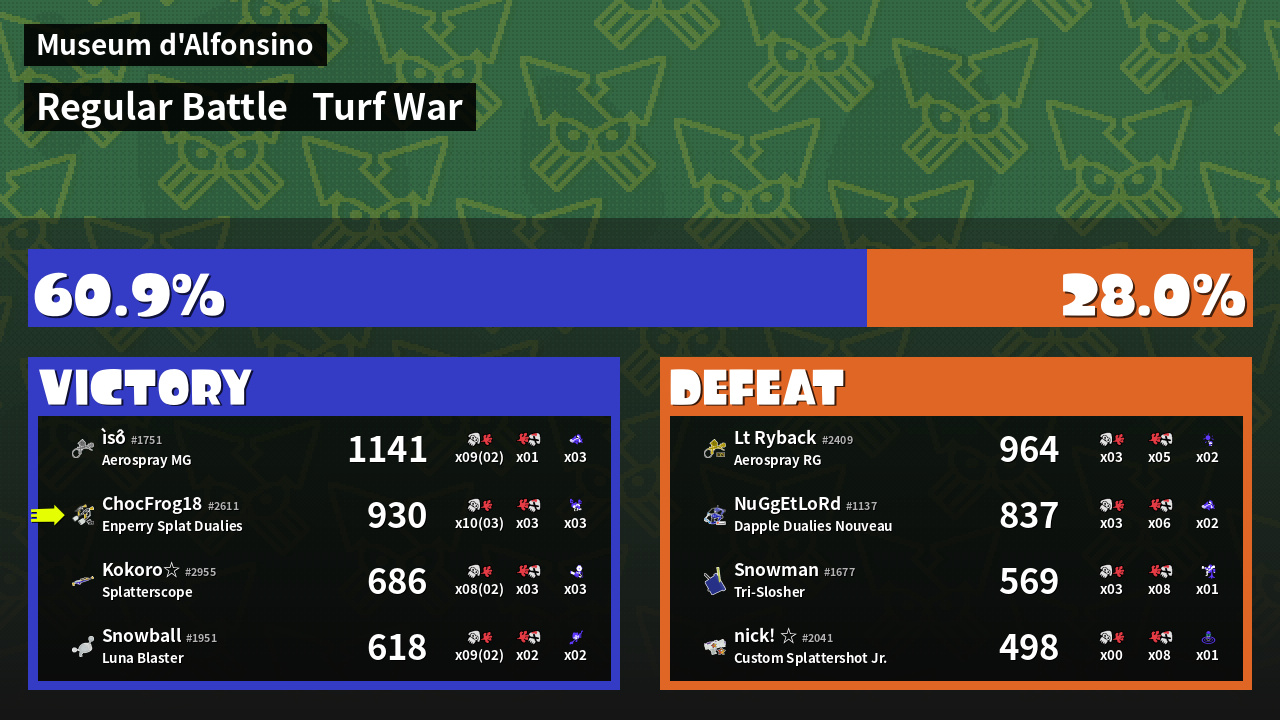 Results of ChocolateFrog18's Battle