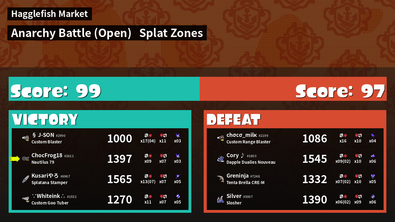| Mode | Splat Zones - Anarchy Battle (Open) | ||