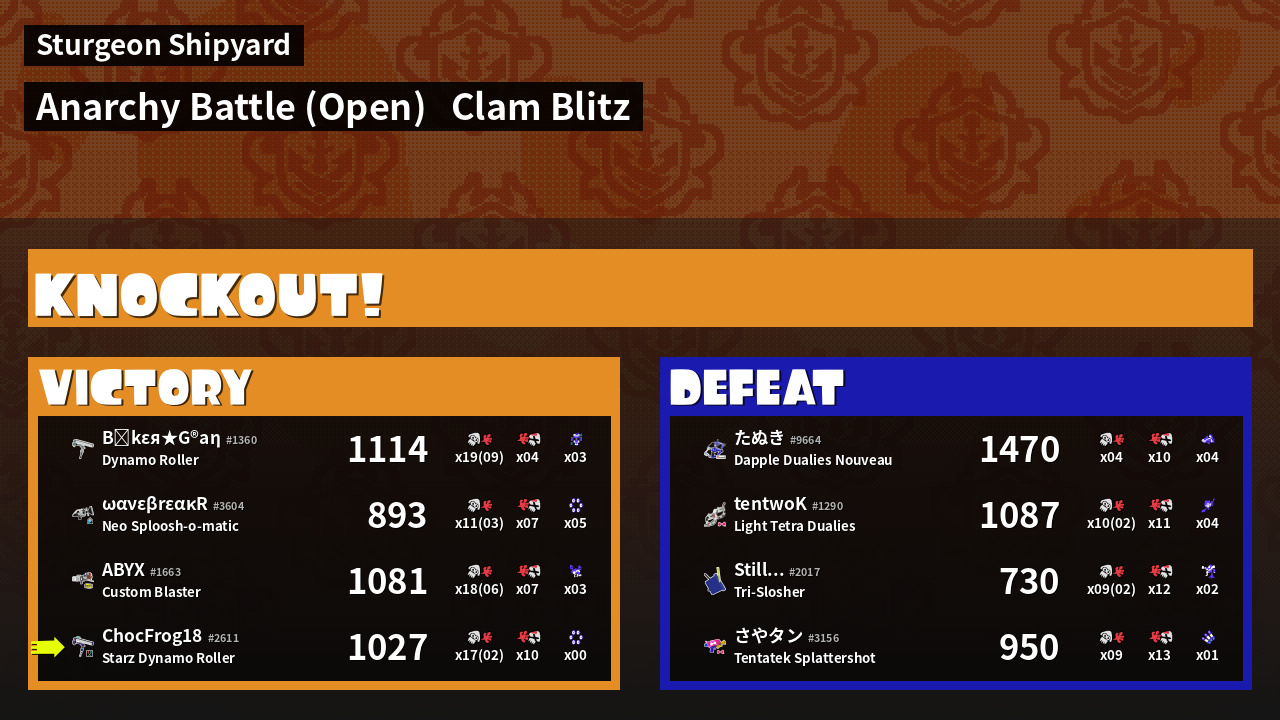 | Mode | Clam Blitz - Anarchy Battle (Open) | ||