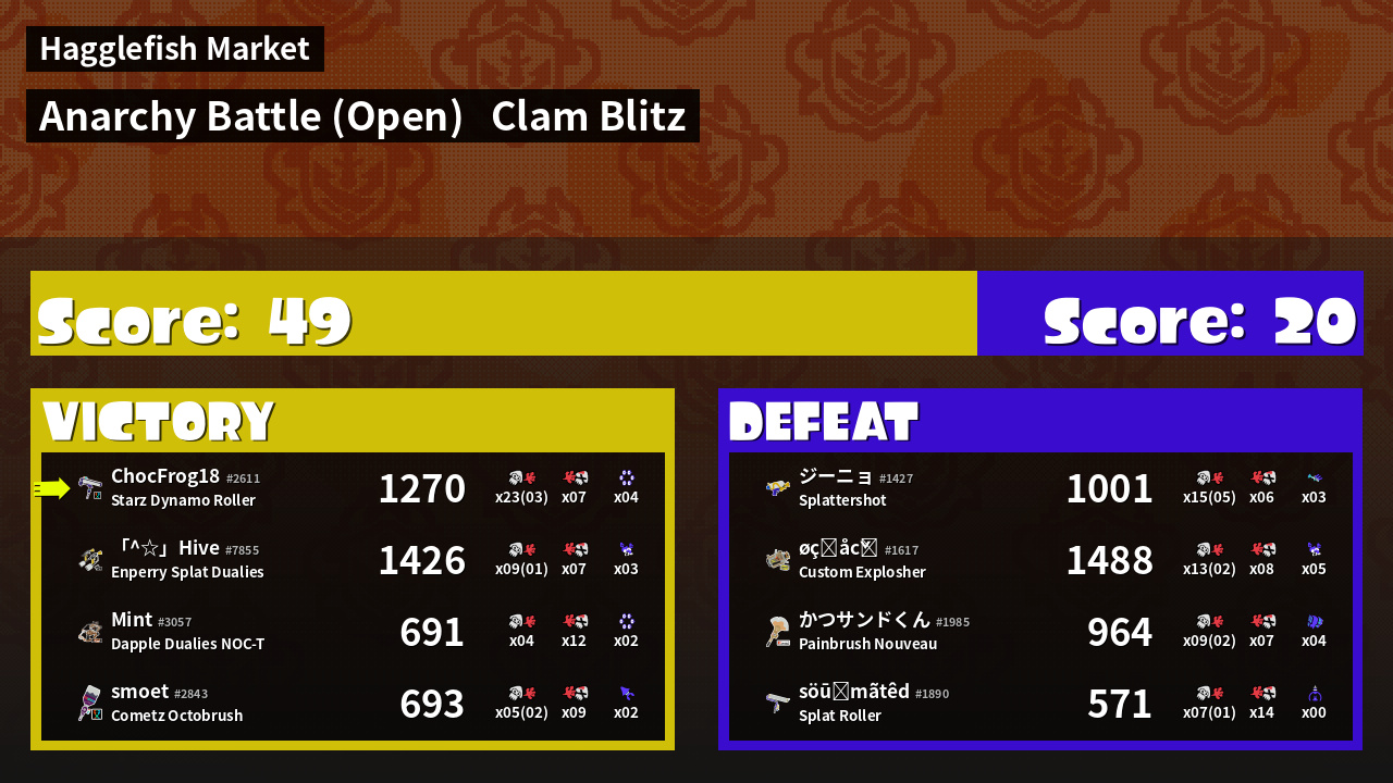 | Mode | Clam Blitz - Anarchy Battle (Open) | ||