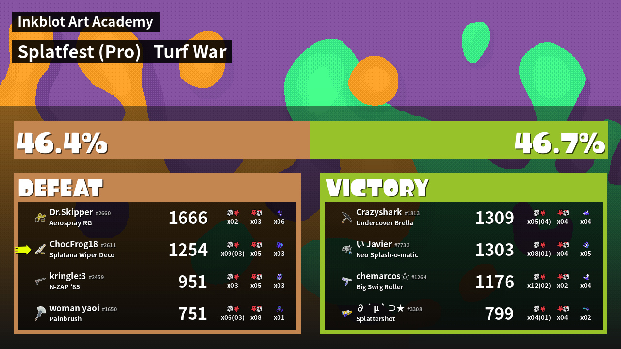 | Mode | Turf War - Splatfest (Pro) | ||