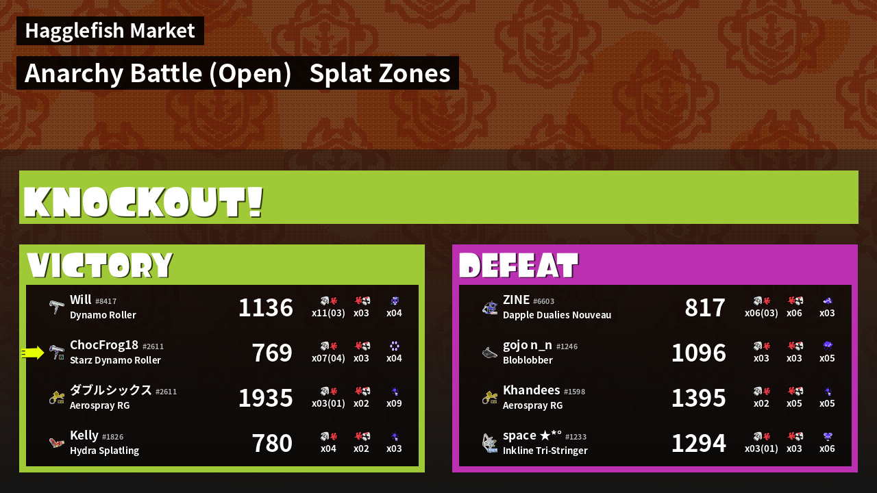 | Mode | Splat Zones - Anarchy Battle (Open) | ||
