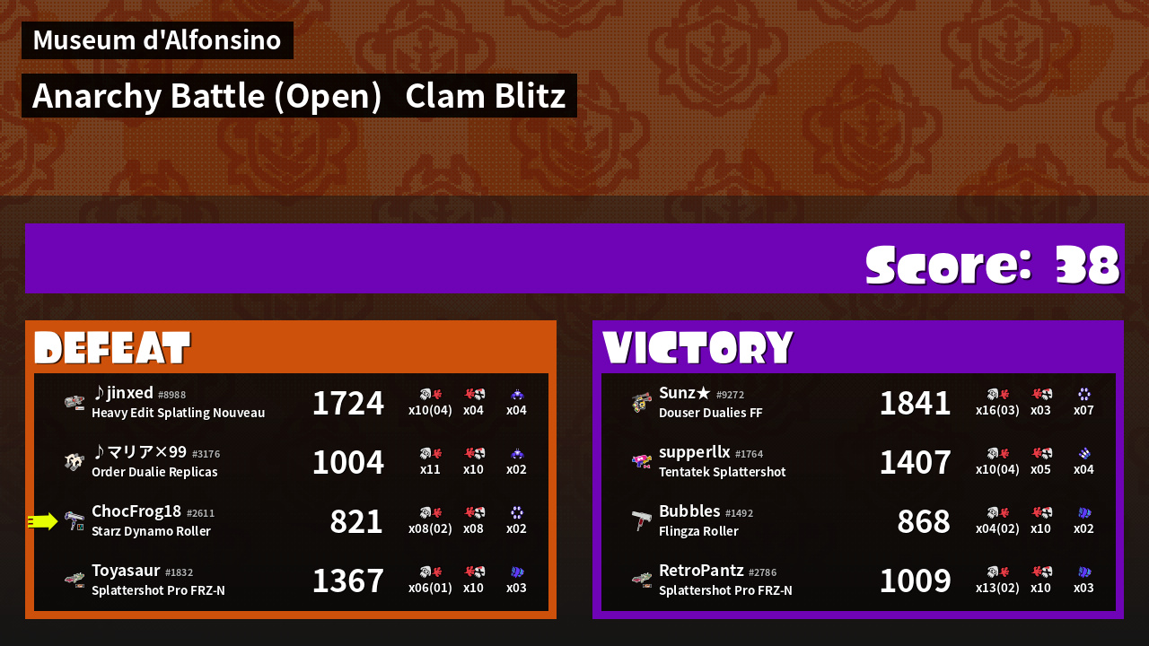| Mode | Clam Blitz - Anarchy Battle (Open) | ||