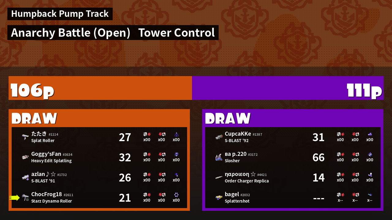 | Mode | Tower Control - Anarchy Battle (Open) | ||