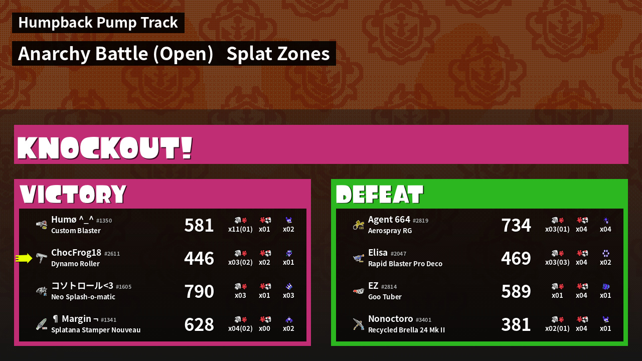 | Mode | Splat Zones - Anarchy Battle (Open) | ||