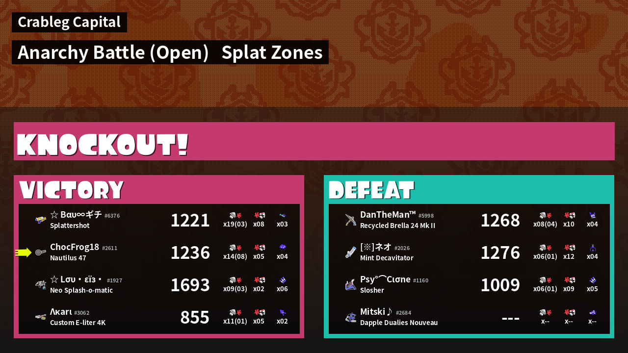 | Mode | Splat Zones - Anarchy Battle (Open) | ||