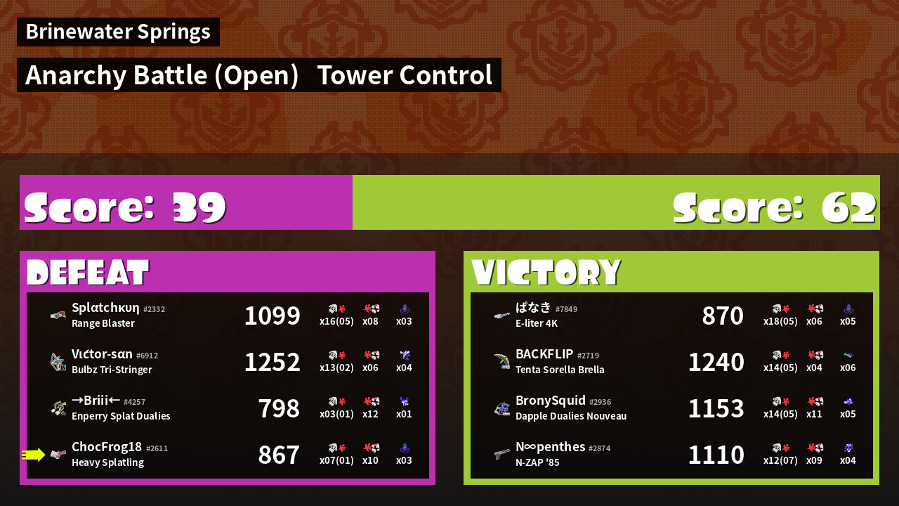 | Mode | Tower Control - Anarchy Battle (Open) | ||