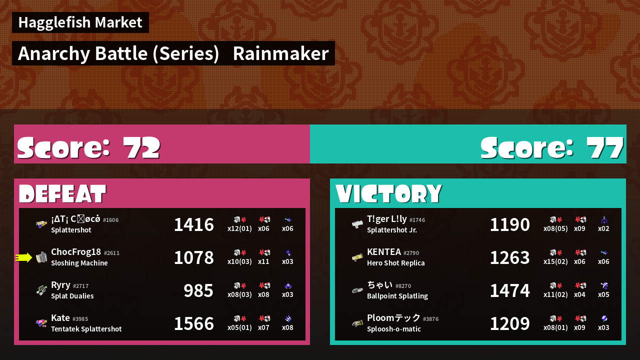 | Medals | #1 Score Booster #1 Splat Assister #1 Checkpoint Breaker | ||