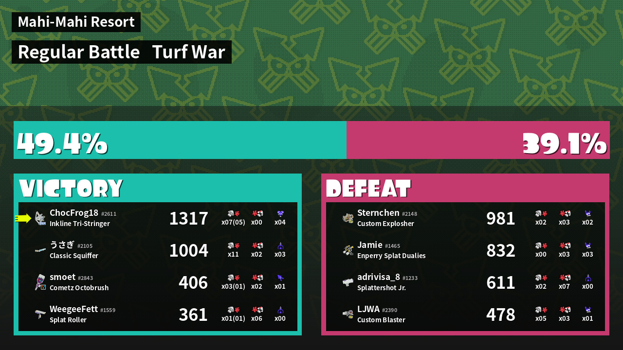 | Medals | #1 Turf Inker #1 Home-Base Inker #1 Enemy-Base Inker | ||