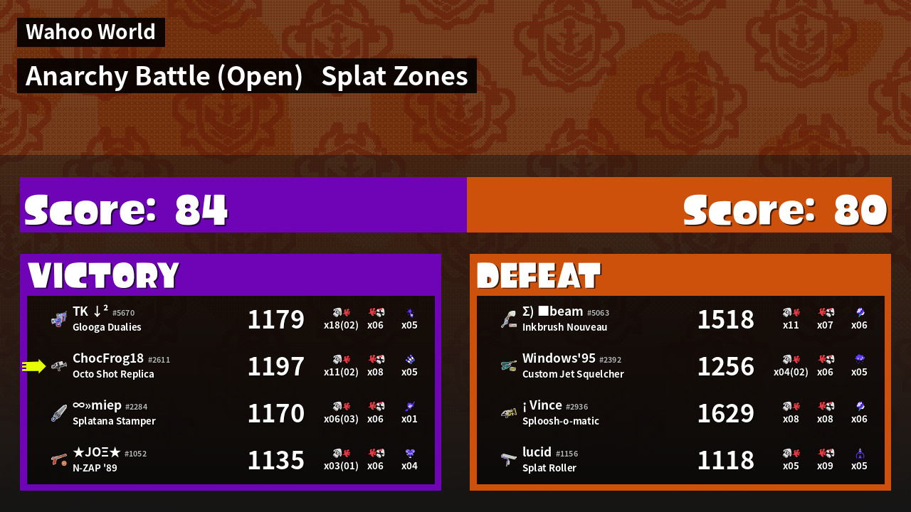 | Mode | Splat Zones - Anarchy Battle (Open) | ||