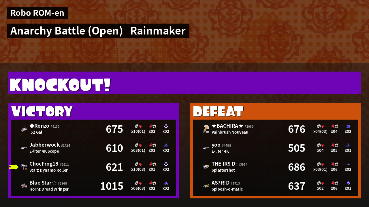 | Mode | Rainmaker - Anarchy Battle (Open) | ||