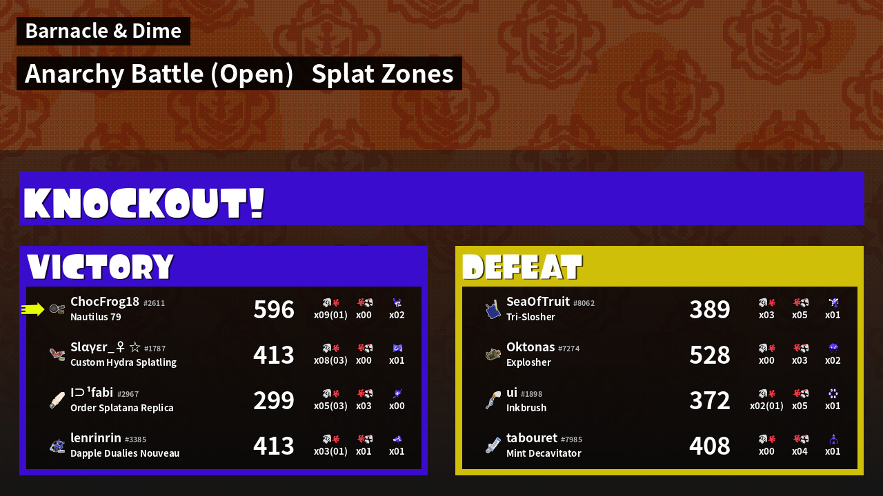 | Mode | Splat Zones - Anarchy Battle (Open) | ||