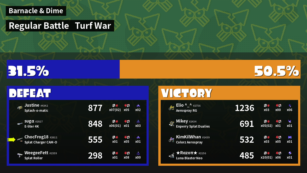 | Weapon | Splat Charger CAM-O ( Sprinkler / Crab Tank) | ||