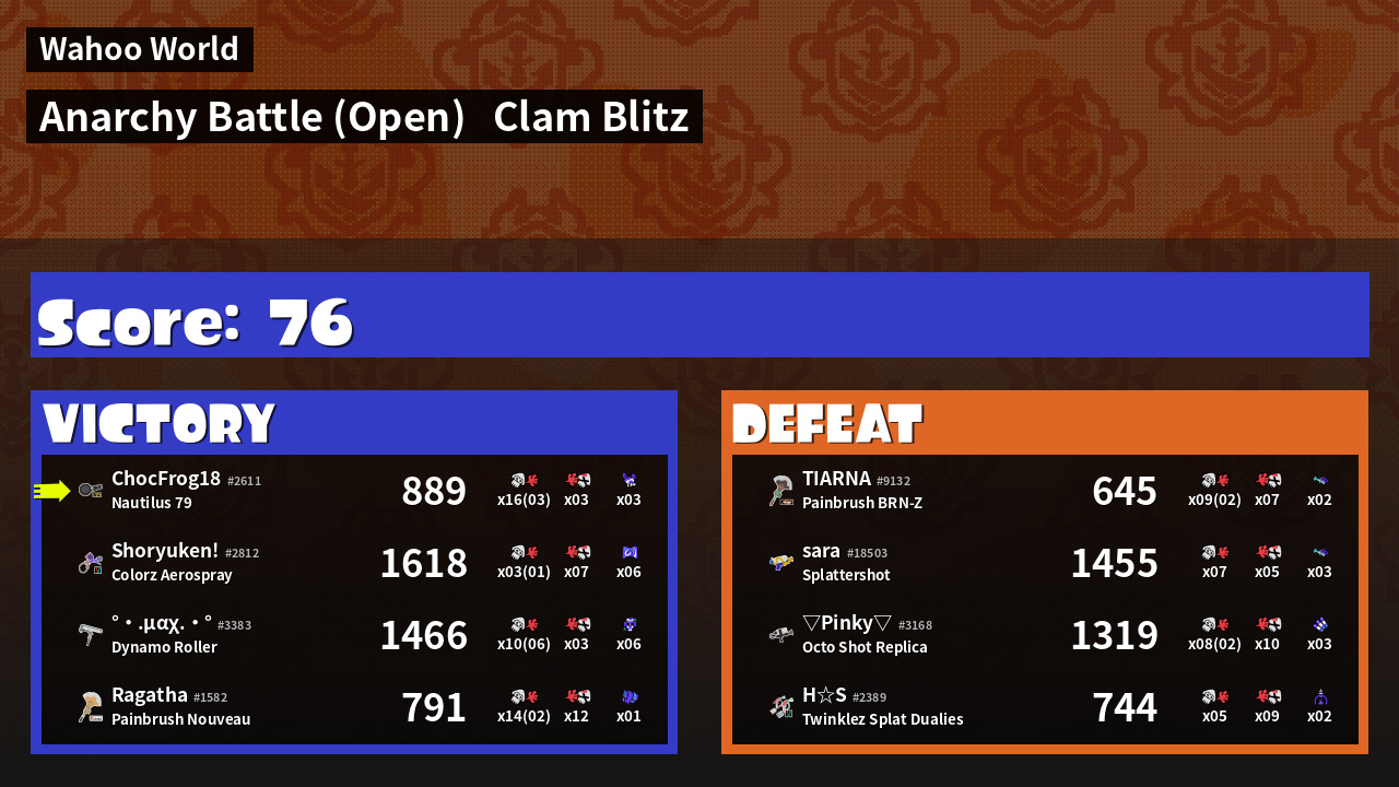 | Mode | Clam Blitz - Anarchy Battle (Open) | ||