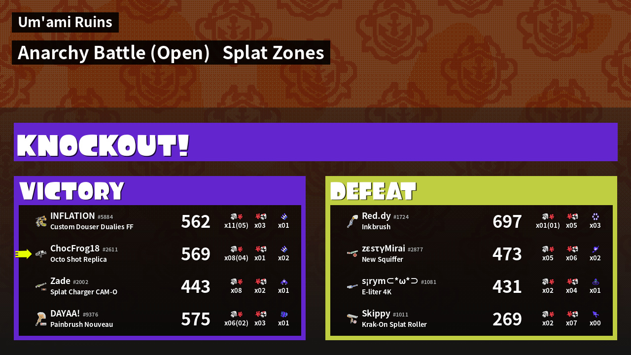 | Mode | Splat Zones - Anarchy Battle (Open) | ||