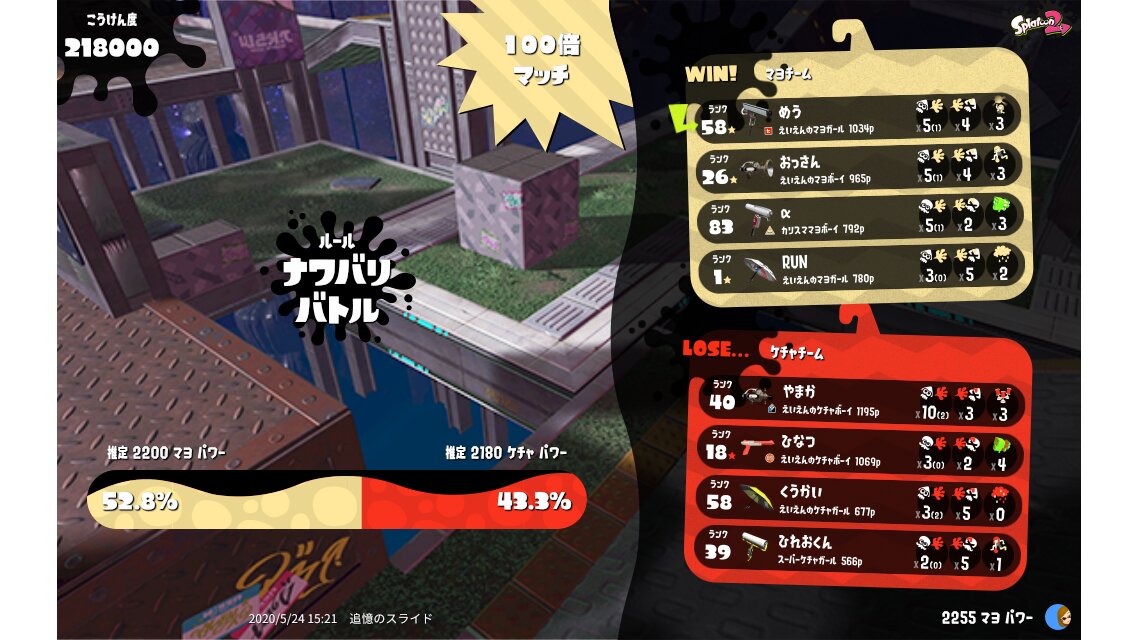 | My team's splatfest power | 2,200 | ||||||||||||||||||||||||||||||||||