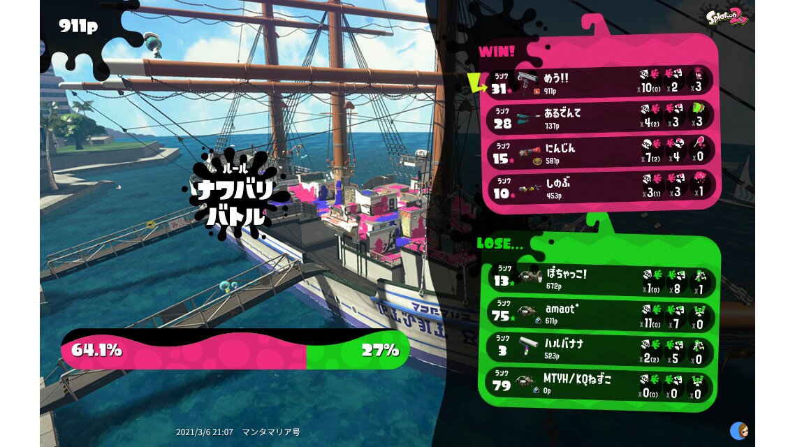| Mode | Turf War - Regular Battle | |||||||||||||||||||||||||||||||||||||
