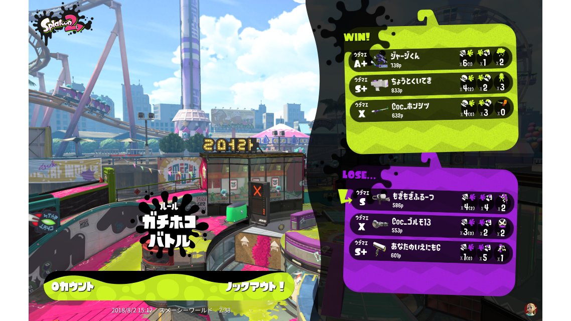 | Name | Weapon | Level | Rank | Inked | k+a/sp | k/d |