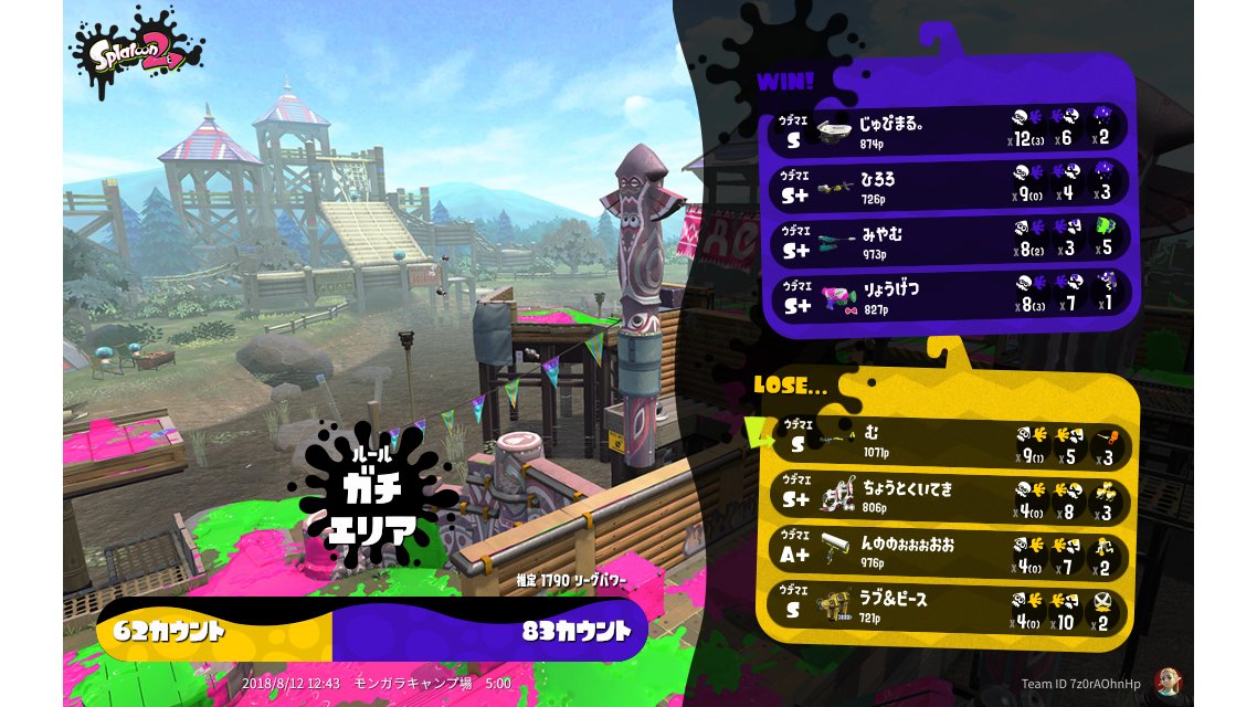 | Mode | Splat Zones - League Battle (Quad) | ||||||||||||||||||||||||||||