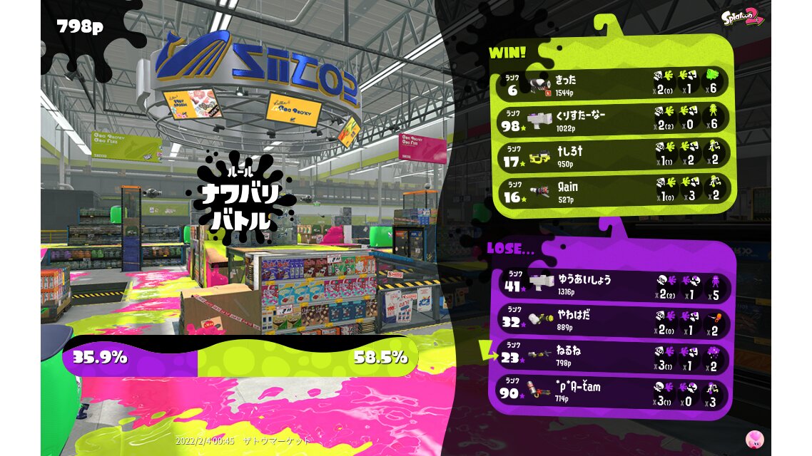 | SplatNet Battle # | 19,795 | |||||||||||||||||||||||||||||||||||||||||||