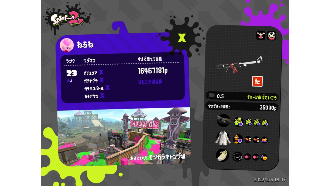 | Name | Weapon | Level | Rank | Inked | k+a/sp | k/d |