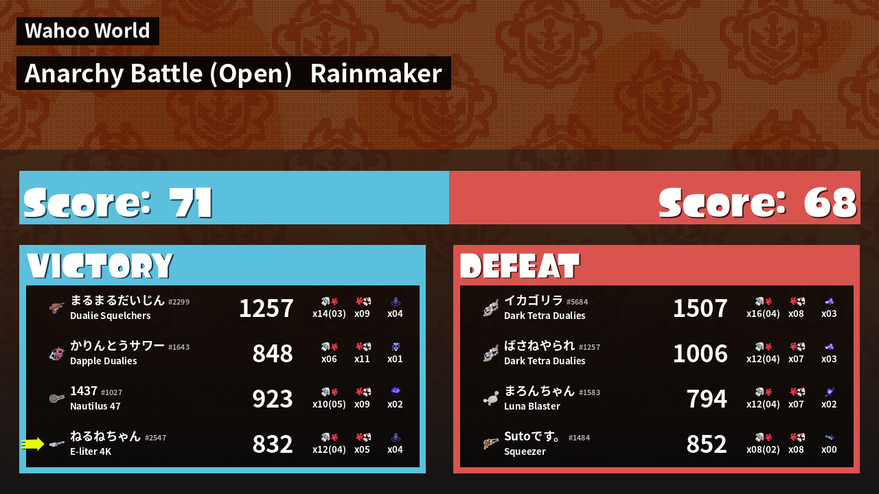 | Mode | Rainmaker - Anarchy Battle (Open) | ||