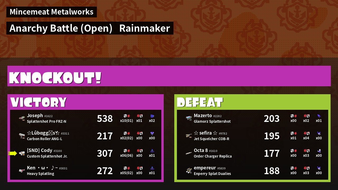 Name | Weapon | Inked | ![]() |