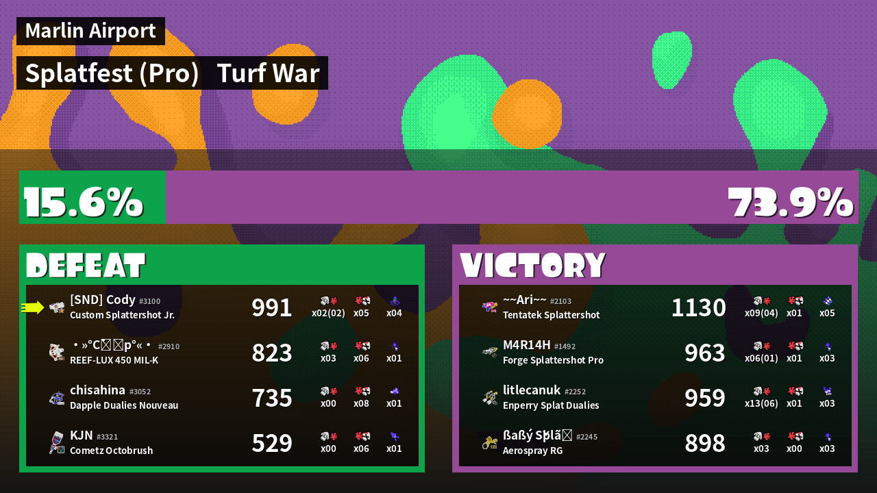 | Mode | Turf War - Splatfest (Pro) | ||