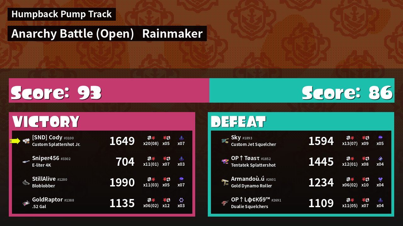 | Mode | Rainmaker - Anarchy Battle (Open) | ||
