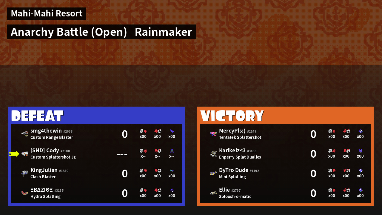 | Mode | Rainmaker - Anarchy Battle (Open) | ||