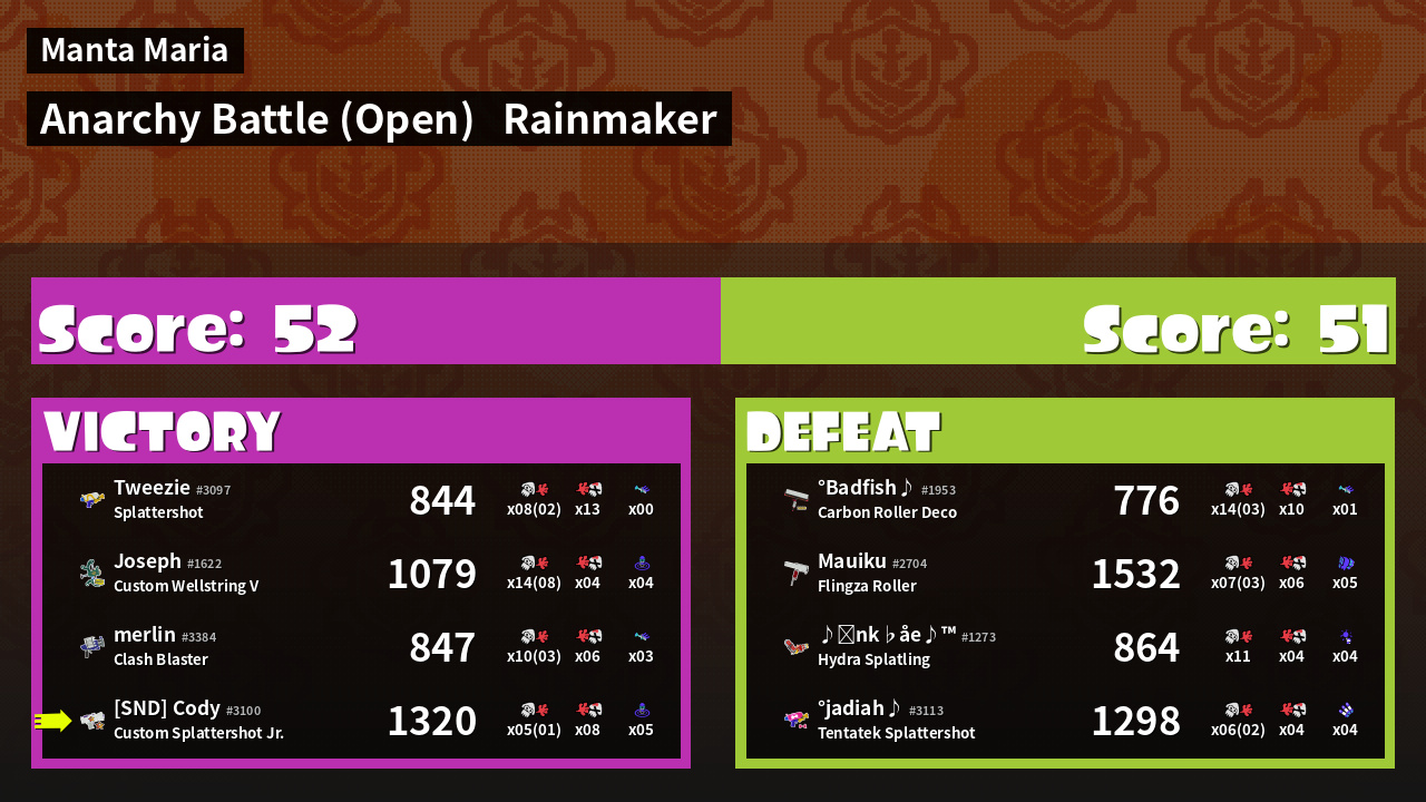 | Mode | Rainmaker - Anarchy Battle (Open) | ||