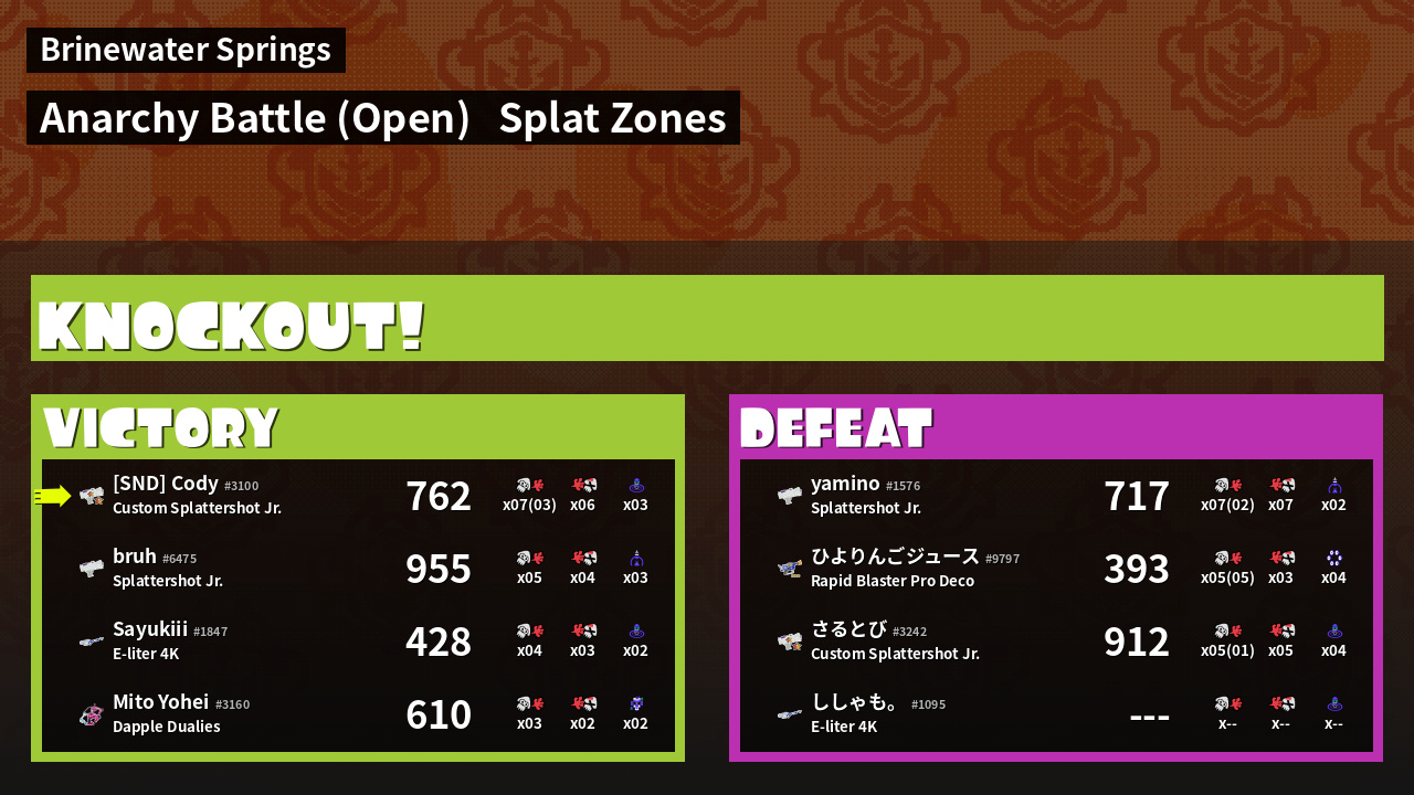 | Mode | Splat Zones - Anarchy Battle (Open) | ||