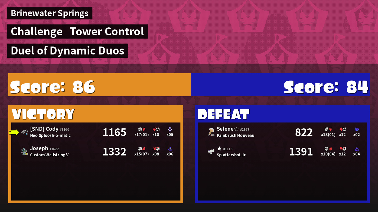 | Medals | #1 Overall Splatter #1 Score Booster Record-Score Setter | ||