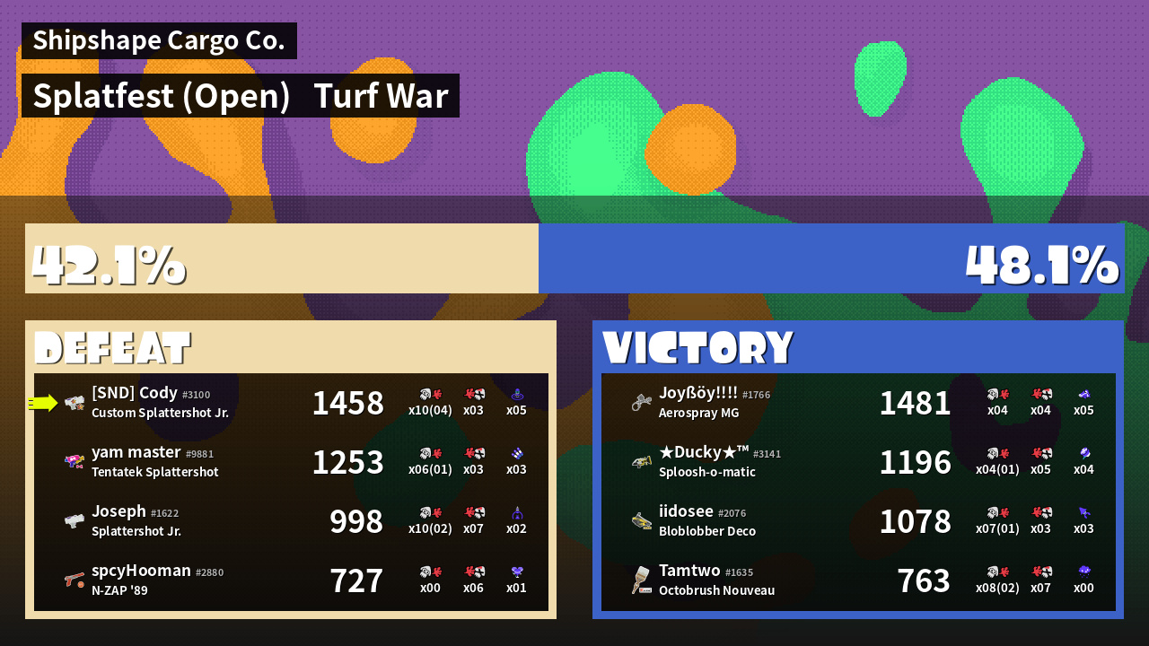 | Medals | #1 Overall Splatter #1 Turf Inker #1 Enemy-Base Inker | ||