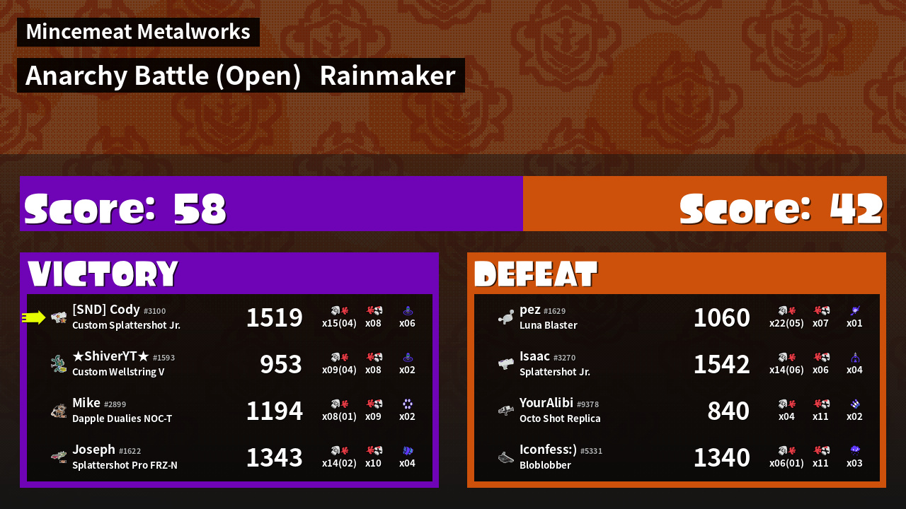 Kills / Deaths | 11 + 4 / 8 > Kill Ratio: 1.38 | ||