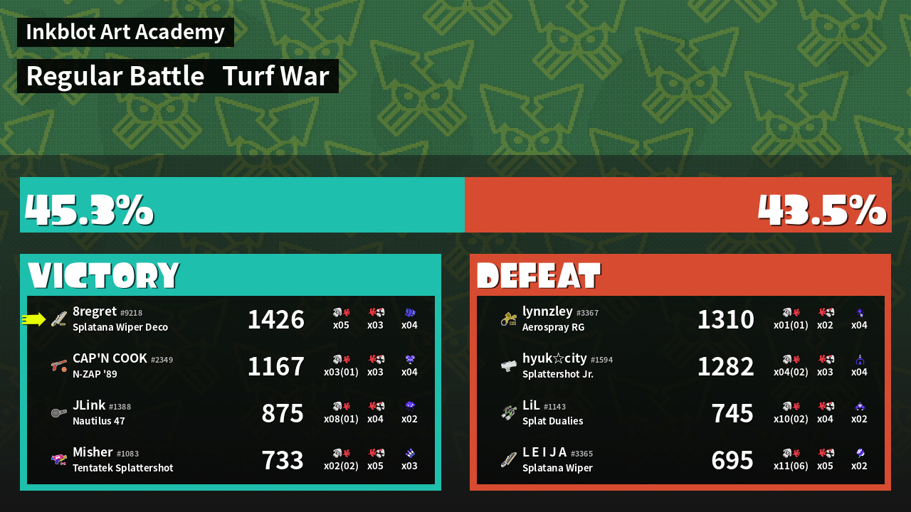 | Mode | Turf War - Regular Battle | ||