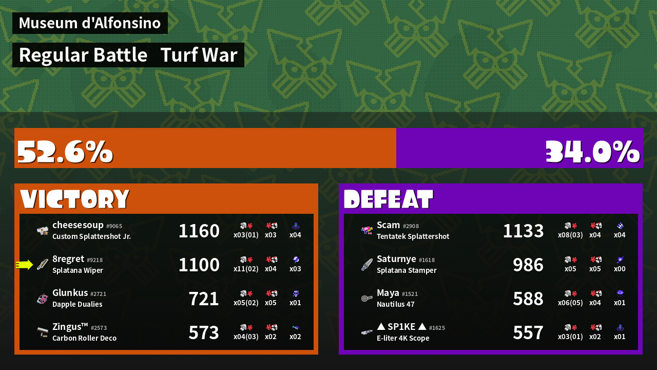 | Medals | #1 Overall Splatter #1 Popular Target #1 Enemy-Base Inker | ||