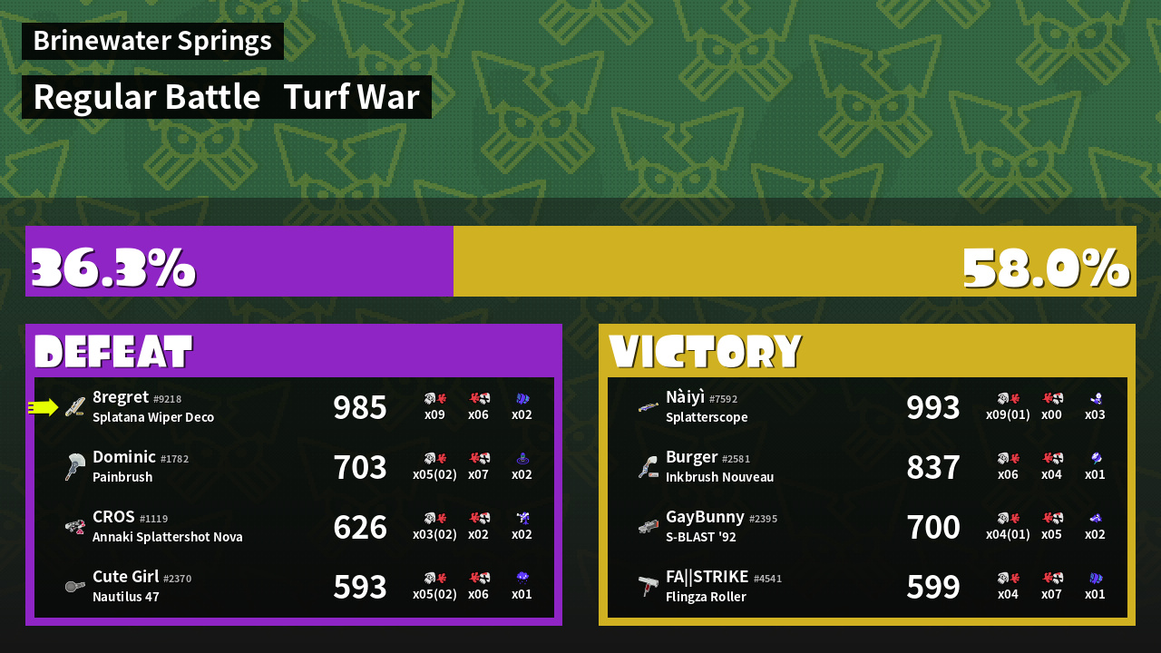 | Mode | Turf War - Regular Battle | ||