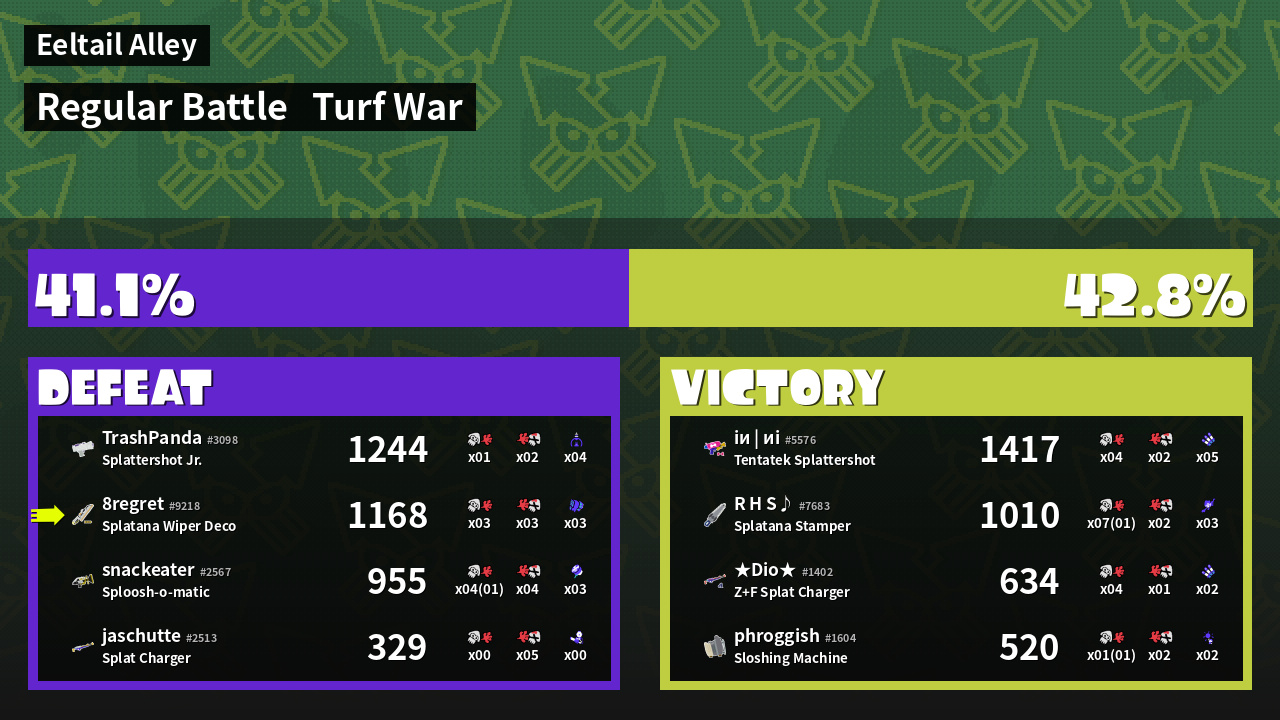 | Medals | #1 Enemy Splatter #1 Tenta Missiles User #2 Overall Splatter | ||