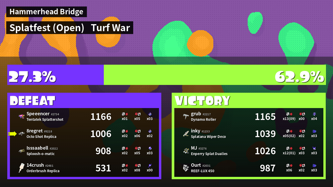 | Mode | Turf War - Splatfest (Open) | ||