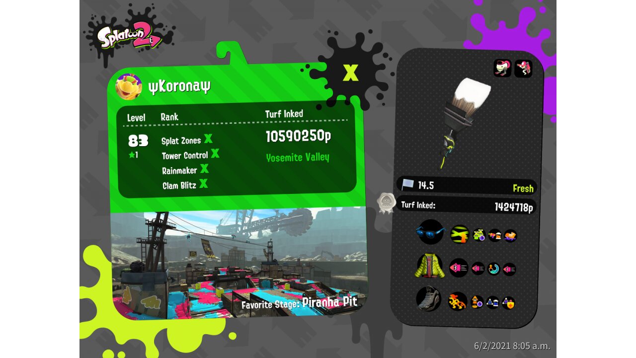 | SplatNet Battle # | 14,100 | |||||||||||||||||||||||||||||||||||||||||||||||||