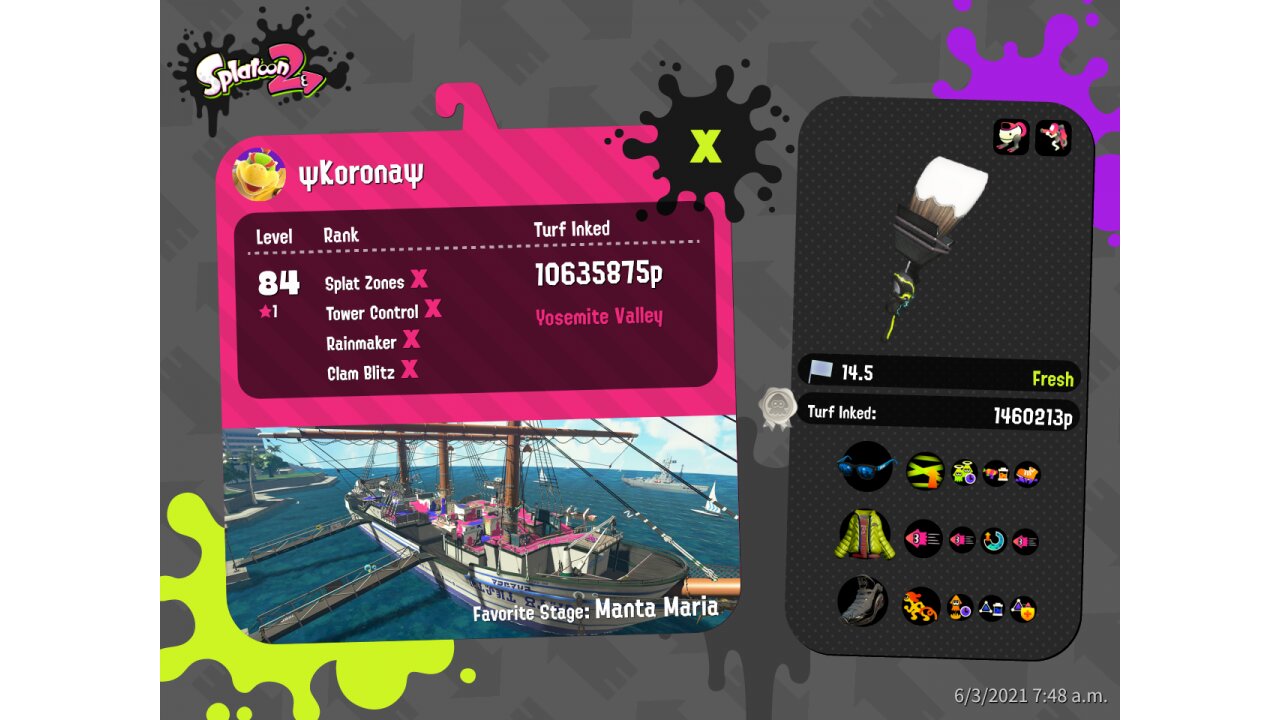 | SplatNet Battle # | 14,168 | |||||||||||||||||||||||||||||||||||||||||||||||||