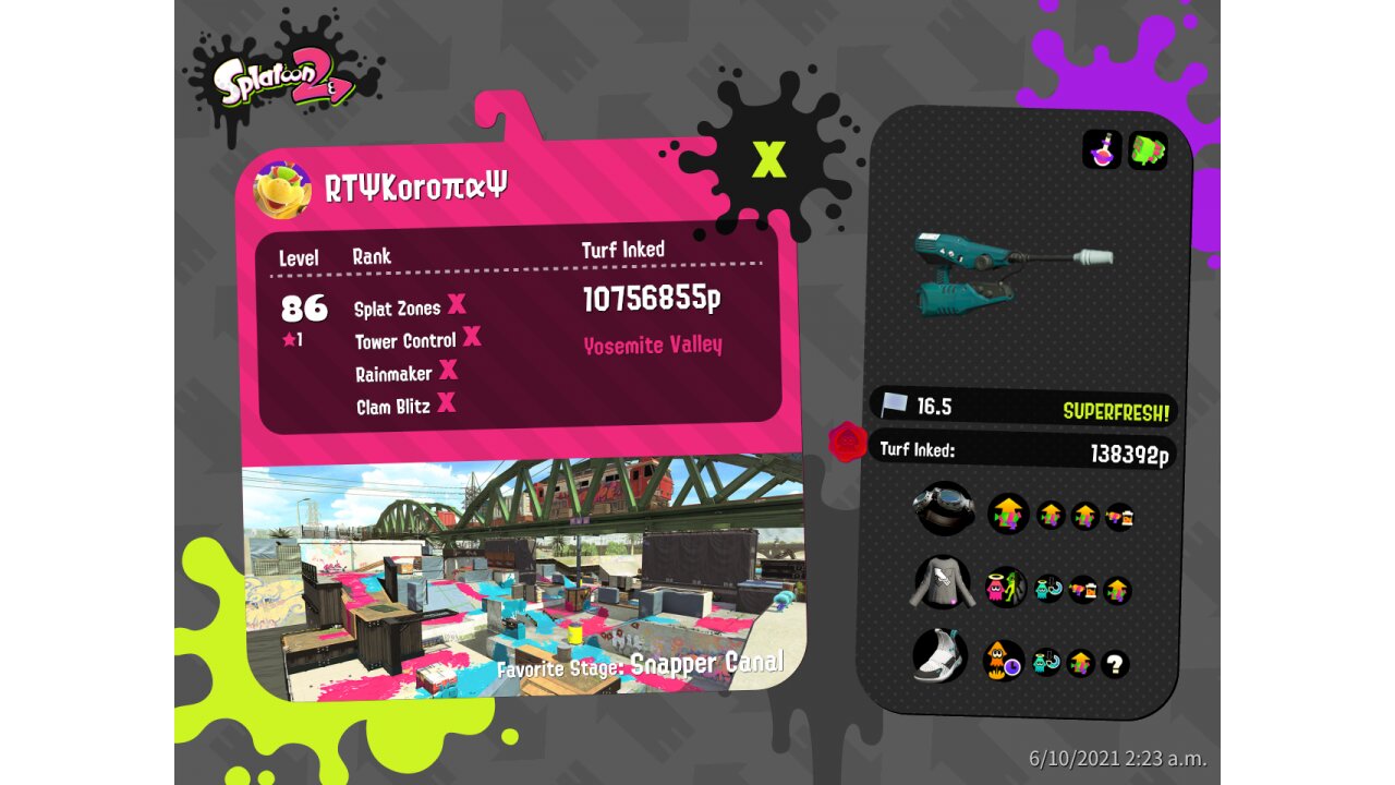 | SplatNet Battle # | 14,340 | ||||||||||||||||||||||||||||||||||