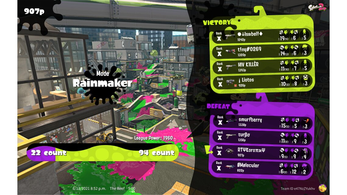 | SplatNet Battle # | 14,458 | |||||||||||||||||||||||||||||||||||||||||||||||||