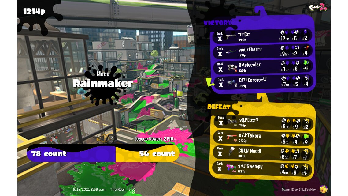 | SplatNet Battle # | 14,459 | |||||||||||||||||||||||||||||||